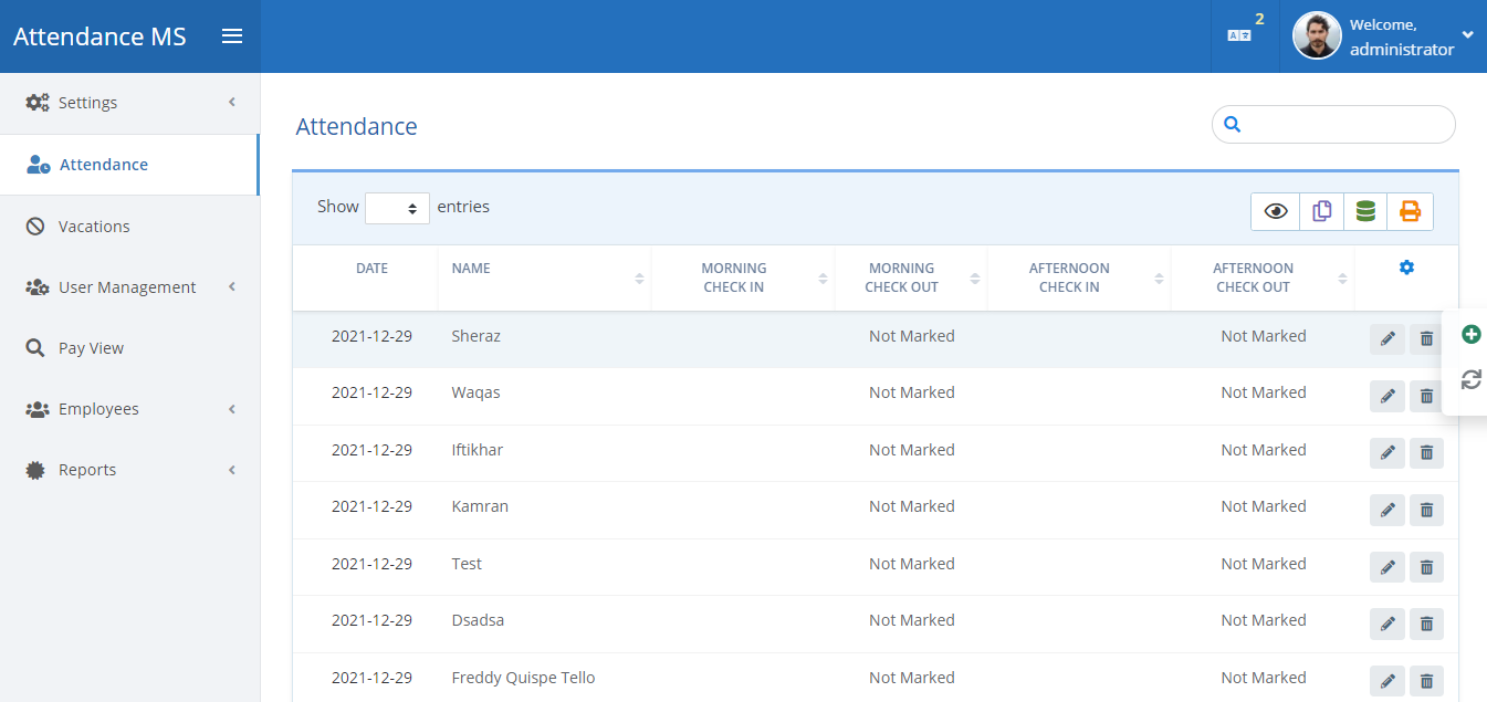 Our Employee Management System is designed to automate and simplify HR and workforce operations across multiple branches. It includes employee tracking, auto salary generation, and check-in/check-out management for accurate attendance and payroll processing. The system supports vacation and leave management, ensuring smooth scheduling and workforce planning. With multi-legal (or multi-lingual) functionality, it adapts to organizations operating under different legal entities or in multiple languages. The multi-ledger advance reporting feature provides detailed financial insights, while user rights management ensures data security and role-based access control. Overall, the system enhances efficiency, transparency, and productivity in employee and branch operations.